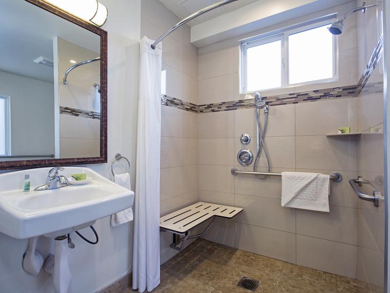The roll-in shower is designed for easier access and safer bathing, helping reduce stress during your stay. If you have specific accessibility needs, we encourage you to contact the hotel directly so we can assist with details and ensure the room meets your expectations.